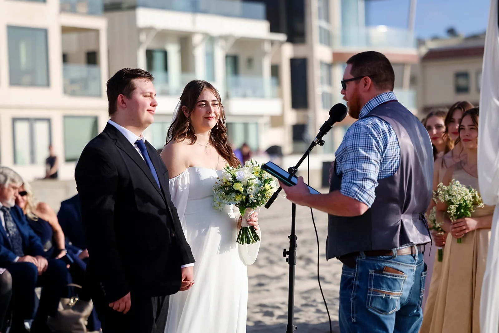 A carefully planned ceremony timeline ensures your wedding day flows naturally from preparation to reception. Outdoor waterfront weddings require additional attention to lighting and setup time. For optimal photography, many couples schedule their ceremony approximately 60 to 90 minutes before sunset to capture golden-hour portraits.